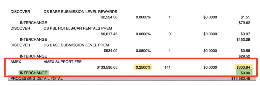 If you’re glancing through all of these line items, you’ll just see words like “Amex” and “Interchange” and assume it’s a standard fee. But it’s not.
