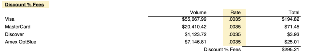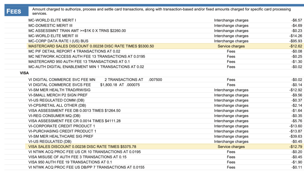 But this shows that the discount rate is only a small portion of what you’re paying. And there are additional processor markups buried in the other fees that you’re being charged.