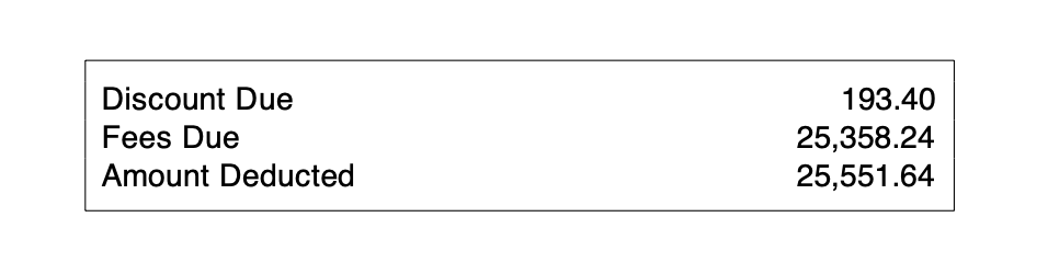 But if we do the math, multiplying the base rate by the net sales for each row, we can see that the numbers match the “Discount Due” column to the far right.
