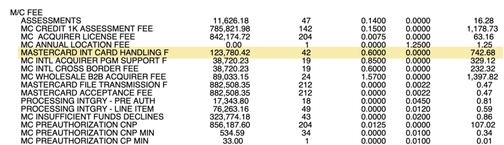 Check out this example from an Elavon statement showing a Mastercard International Card Handling Fee: