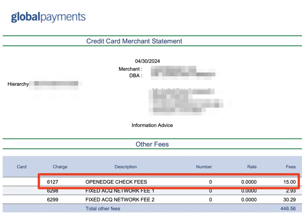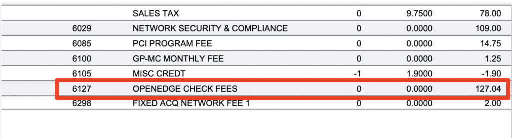 While can’t easily classify this as a pure junk fee (since there’s an actual service being provided), the OpenEdge Check Fee is absolutely an inflated processor markup that can be negotiated.
