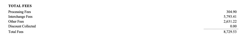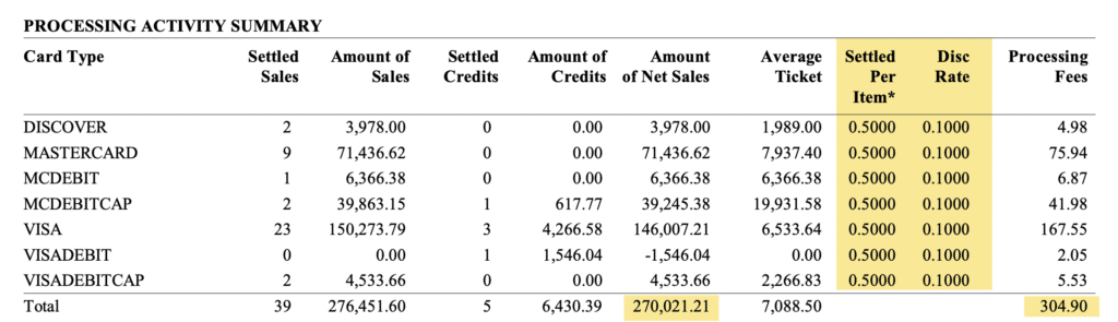 When we look at the Processing Fees section, we can see this merchant is paying a 0.10% + $0.05 per transaction markup to their processor. And that’s where the $304.90 total comes from.