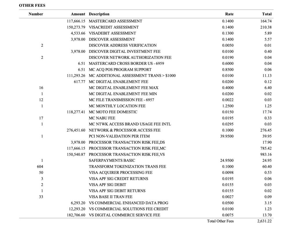 But when you start to dig a bit deeper, you’ll quickly realize that certain fees are borderline miscategorized. Vague category titles like “Other” make it easier for processors to bury markups and hidden charges.