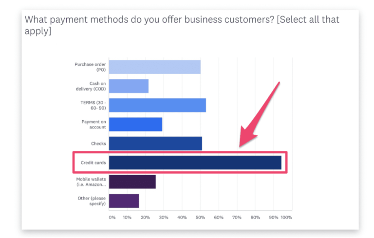94% of B2Bs offer credit cards as a payment collection method for customers.