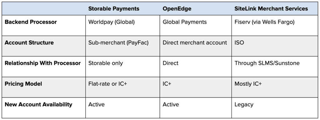 It’s also worth mentioning that as of January 2026, Global Payments completed its acquisition of Worldpay (powering option #1 above). Even though Storable controls your rates if you use Storable Payments, it’s still important to understand that two of these three processing options now have the same parent company.