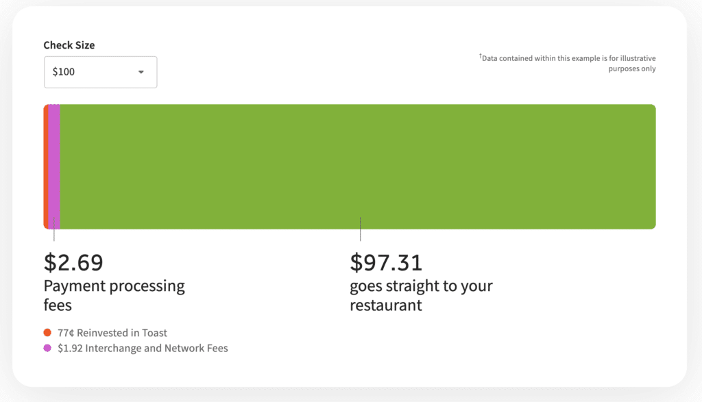 The $0.77 that’s being “reinvested in Toast” is Toast’s processor markup. That’s what you’re paying them to process your payment, which is 0.77% on a $100 check.