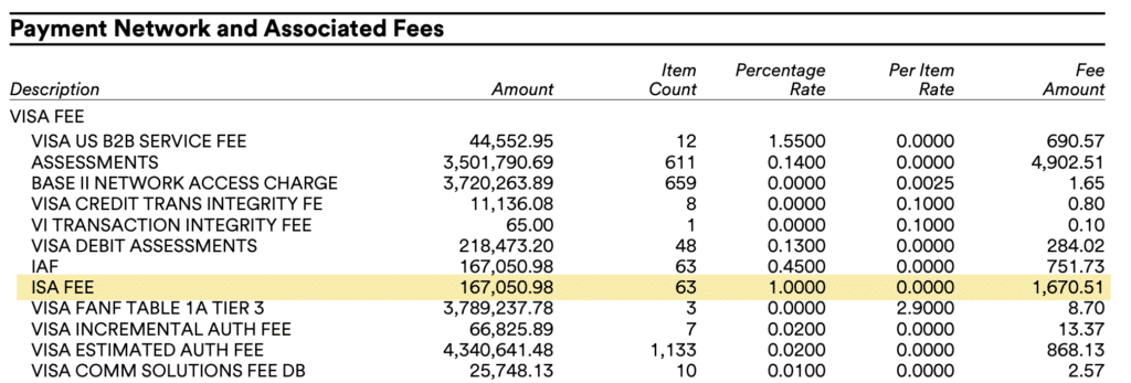 Here’s a screenshot from a statement where the merchant is paying 1% ISA Fee: