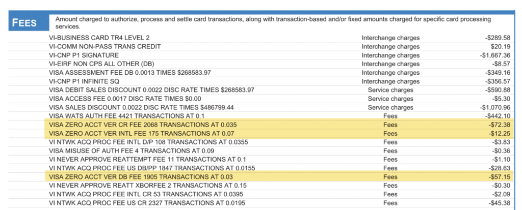 All in, they paid $141.78 in Visa Zero Dollar Authorizations during this particular month. These charges are completely legitimate, and they’re being billed correctly by the processor.
